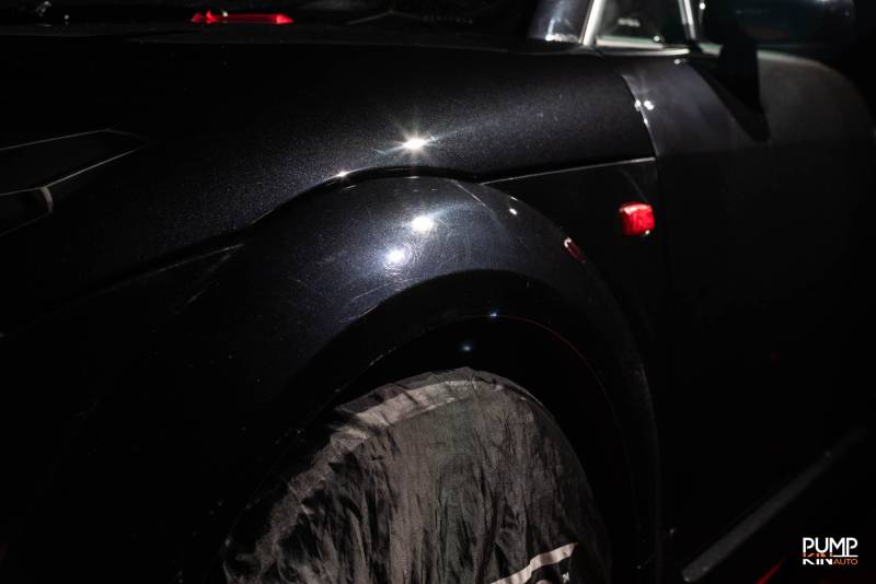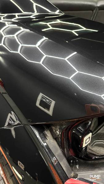 Un débosselage sans peinture a permis de corriger une déformation importante sur l’aile arrière, conservant ainsi la matière d’origine. La carrosserie a ensuite bénéficié d’un polissage complet afin de supprimer les défauts visuels accumulés avec le temps et de redonner profondeur et brillance au noir.