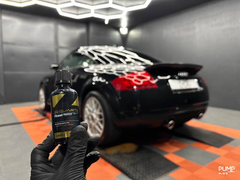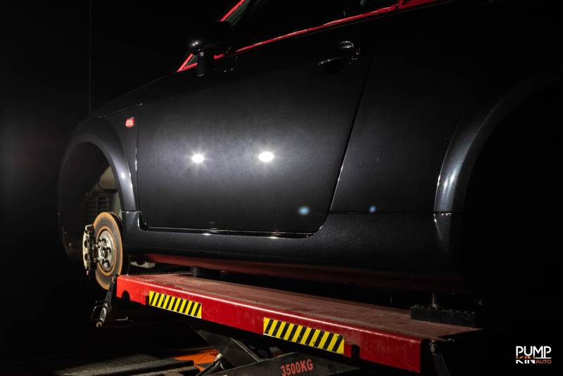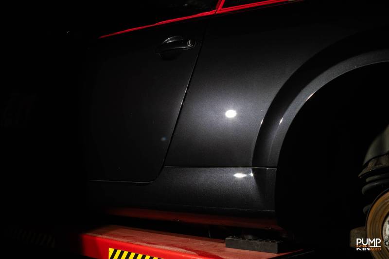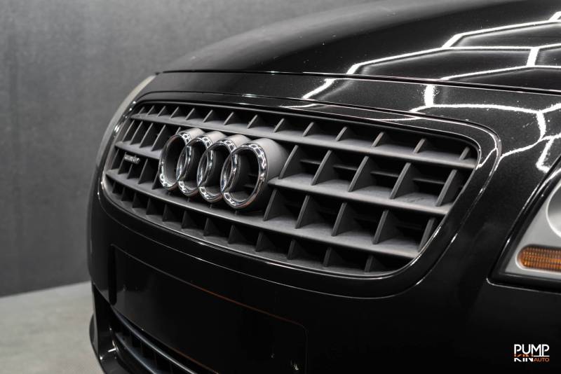 Cette Audi TT MK1 3.2 noire, aujourd’hui considérée comme une véritable youngtimer, a été prise en charge chez Pumpkin Auto pour une remise en état esthétique complète. Malgré ses vingt années d’utilisation, l’objectif était de préserver au maximum la peinture d’origine sans passer par une mise en peinture intégrale.